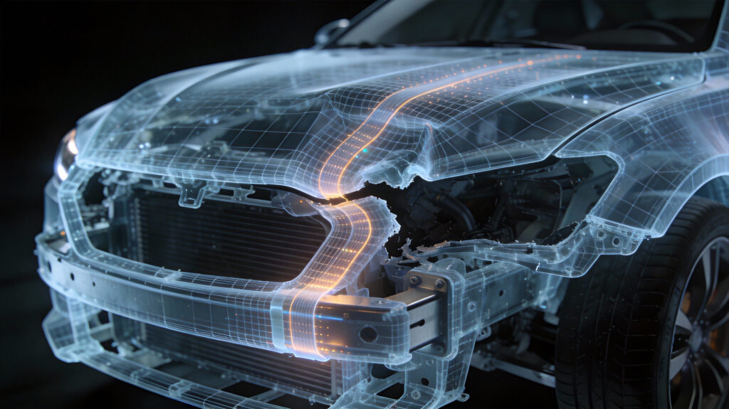 And we turn vehicle structures into sensitive digital nervous systems. Our integrated sensor technology monitors structural integrity in real-time, ensuring that every impact is detected, analyzed, and communicated instantly. In the critical seconds after an accident, data saves lives. We provide the rapid communication link needed to alert emergency services and provide precise diagnostic data before the first responder even arrives.